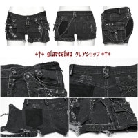 - glareshop グレアショップ「XS-4XL」PX092-B■ゴスロリ パンク ダメージ加工 ポケットパック付き ショート パンツ 黒 レディース | スチームパンク ヴィジュアル系 V系 ステージ 衣装 服 [PUNK RAVE] Punk Distressed Denim Shorts with Side Pocket