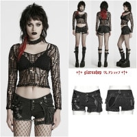 個性的なスタイルを求めるあなたにぴったりな「ゴスロリ パンク ダメージ加工 ポケットパック付き ショートパンツ」。ダメージ加工が施されたこのパンツは、シンプルながらも目を引くデザインで、どんなコーディネートにも合わせやすいアイテムです。フロントのセンターフライには、パイクリベットをあしらい、洗練されたアクセントを加えています。