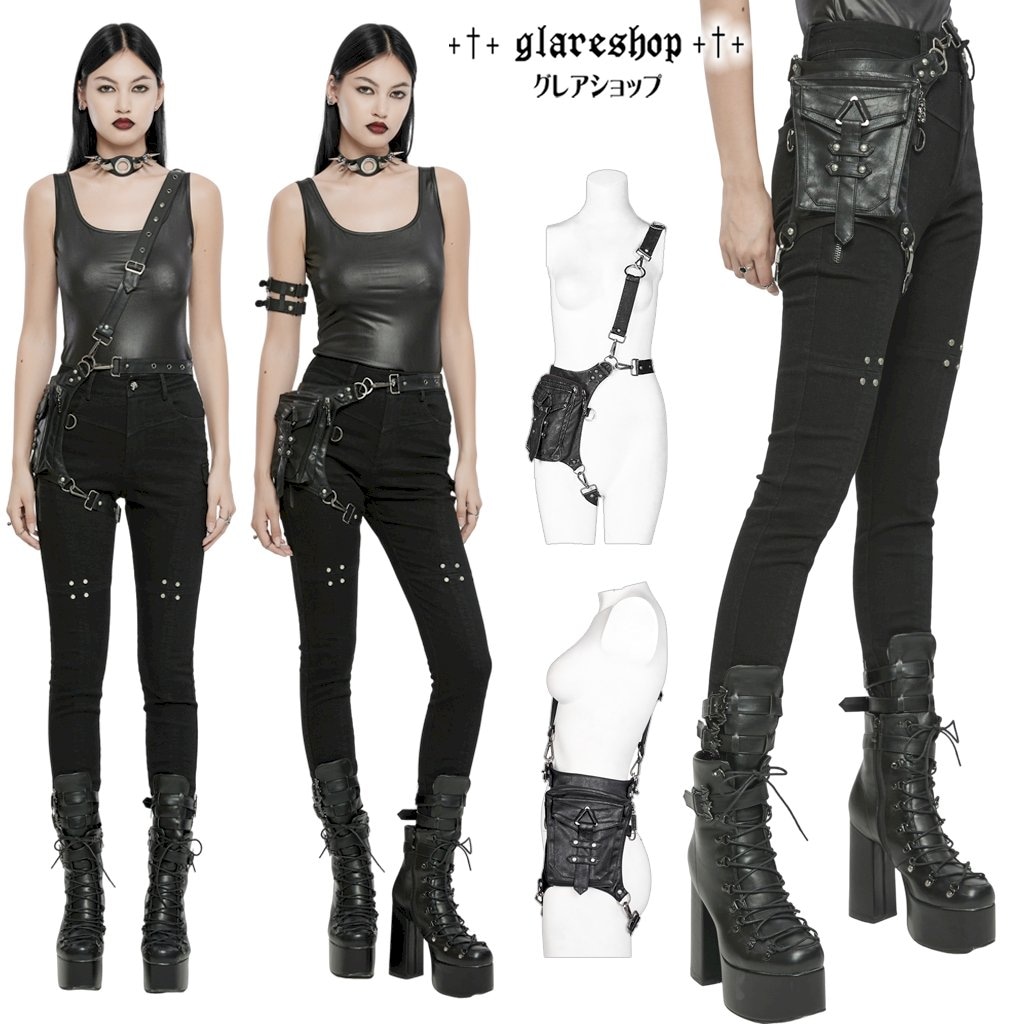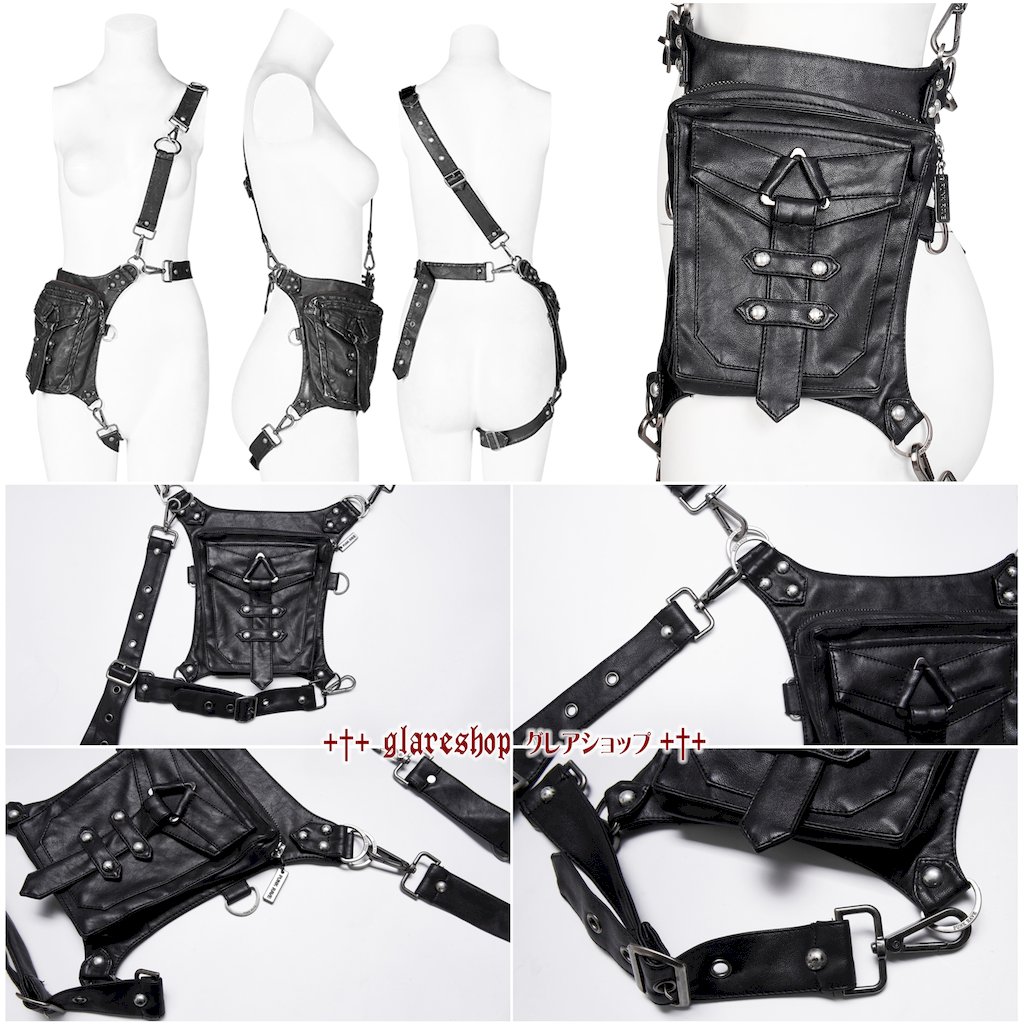 glareshopグレアショップ「F」Zb108-B■ゴスロリパンク退廃風2Wayホルスターバッグショルダーバッグ黒×シルバーレディース|スチームパンクヴィジュアル系V系モード系コスプレステージ衣装服[PUNKRAVE]SteampunkBag