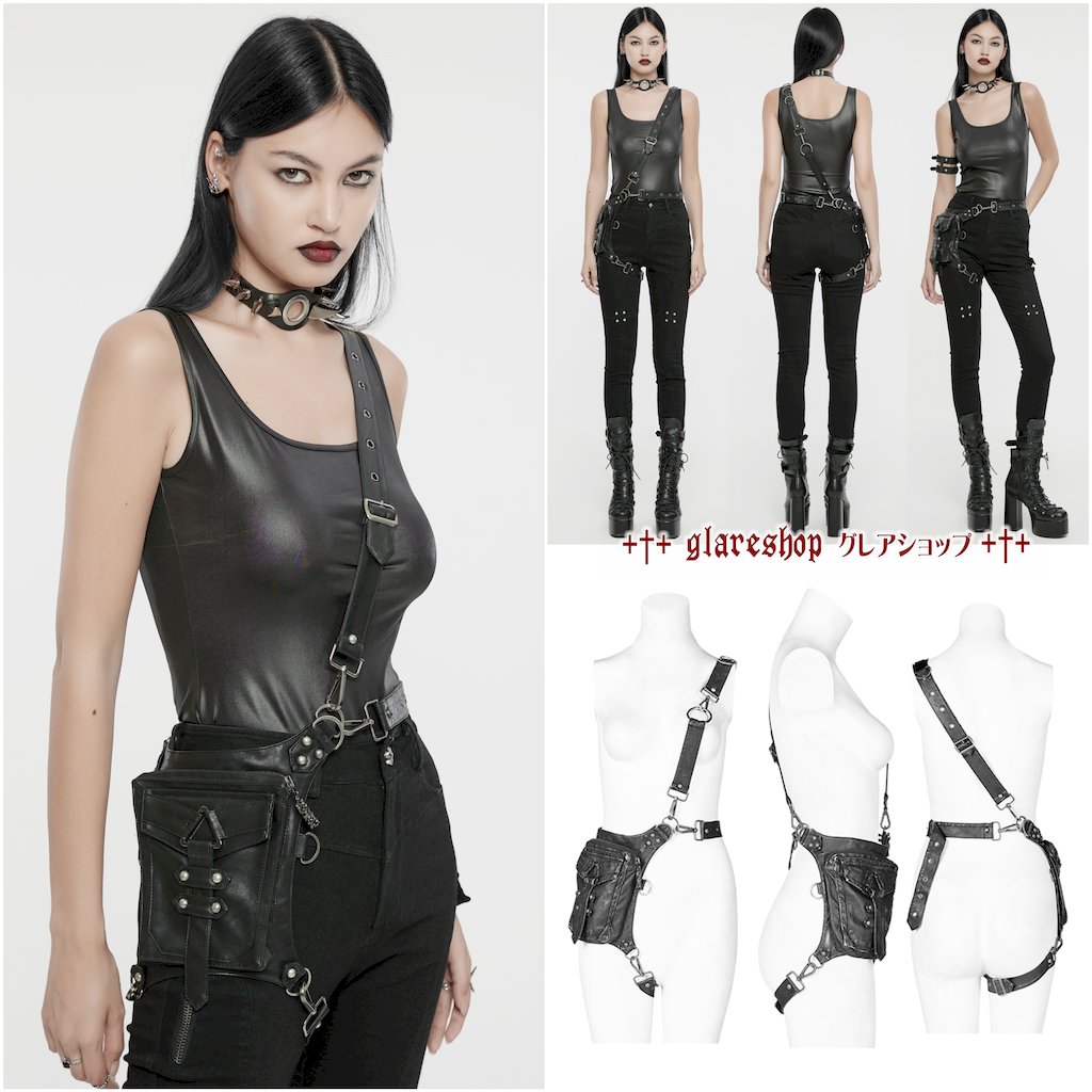 glareshop グレアショップ「F」Zb108-B■ゴスロリ パンク 退廃風 2Way ホルスターバッグ ショルダーバッグ 黒 レディース | スチームパンク ヴィジュアル系 V系 モード系 コスプレ ステージ 衣装 服 [PUNK RAVE] Steampunk Bag