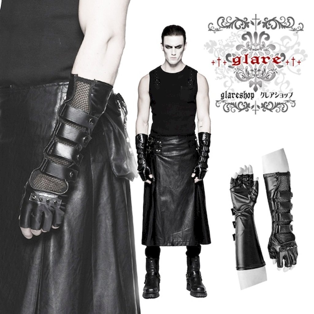 - glareshop グレアショップ「M.L/M.3XL」Zt010-B■ゴスロリ パンク フェックレザー スタッズ アームグローブ 黒 メンズ | ゴスロリ ゴシック パンク ロック ファッション スチームパンク ヴィジュアル系 V系 モード系 コスプレ ステージ 衣装 服 [PUNK RAVE]