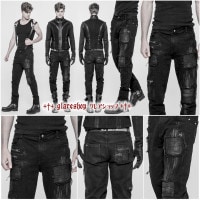 glareshop グレアショップ「M.M/M.XL/M.3XL」PX596-B■スチームパンクダメージ加工 ワイドサルエルパンツ ロング パンツ 黒 メンズ | ゴスロリ ゴシック パンク ロック ファッション ヴィジュアル系 V系 モード系 コスプレ ステージ 衣装 服 [PUNK RAVE]
