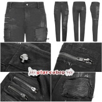 glareshopグレアショップ「M.S-M.5XL」PX354-B■パンク退廃風ダメージ加工ミリタリーロングパンツ黒メンズ|スチームパンクヴィジュアル系V系モード系ステージ衣装服[PUNKRAVE]PunkDecadentTrousers