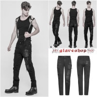 glareshop グレアショップ「M.S-M.5XL」PX505-B■パンク 退廃風 ストーンウォッシュ加工 ボンテージパンツ ロングパンツ 黒 メンズ |スチームパンク ヴィジュアル系 V系 コスプレ ステージ 衣装 服 [PUNK RAVE] Punk decadent trousers