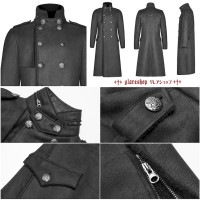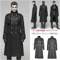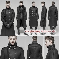 ゴスロリやミリタリー、ゴシックパンクなどさまざまなスタイルに合わせたコートです。裏毛素材で暖かく、チンウォーマーも付いているので防寒対策もばっちりです。中丈タイプで、男性にも女性にも似合うデザインです。