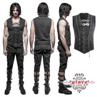 ゴスロリやパンク、戦士風のスタイルにピッタリなレースアップのタンクトップです。黒色で、メンズ向けにデザインされています。スチームパンクやヴィジュアル系、モード系、そしてコスプレやステージ衣装としてもおすすめです。サイズはMから5XLまで揃っているので、幅広い体型の方に対応しています。