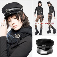 glareshopグレアショップ「F」ZX047-B■ゴスロリゴシックパンクモード系マリンキャップモッズキャップ帽子黒レディース|ゴスロリゴシックパンクロックファッションスチームパンクヴィジュアル系V系モード系コスプレステージ衣装服[PUNKRAVE]