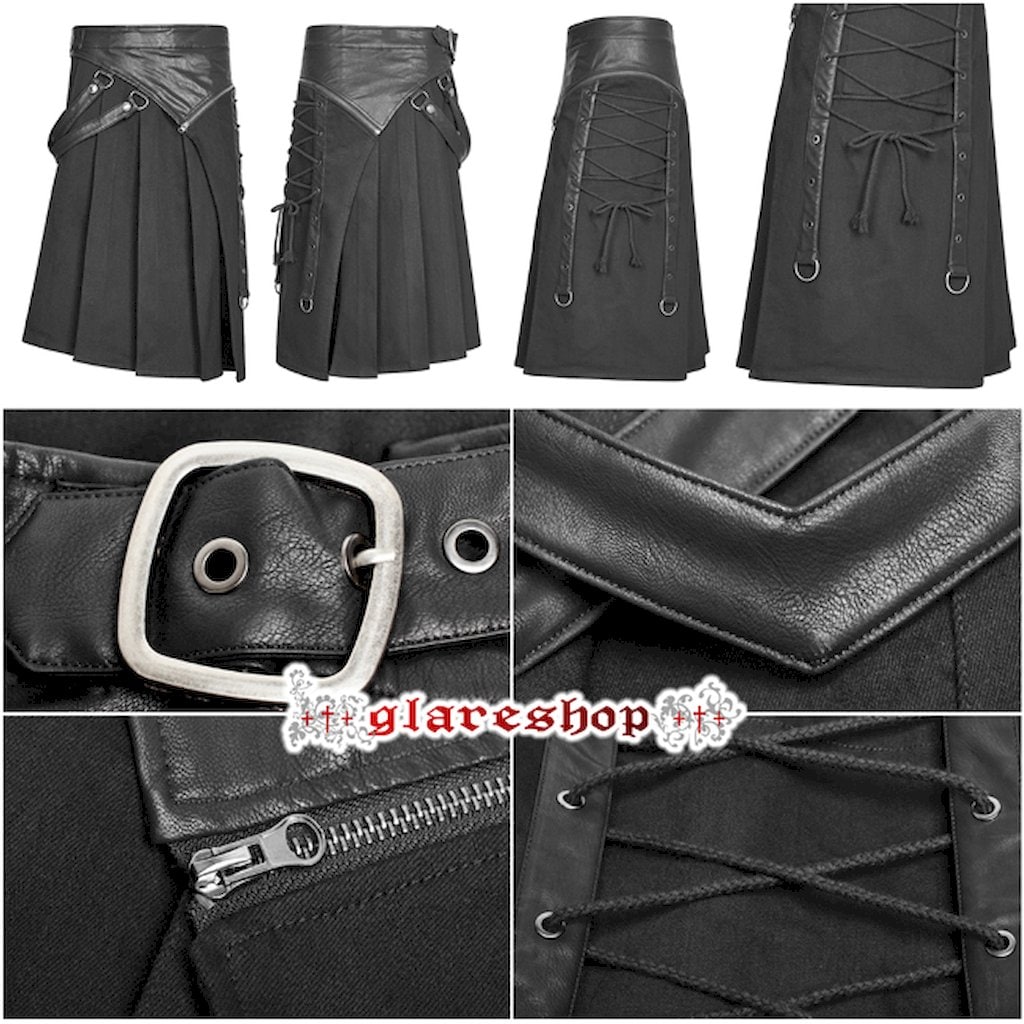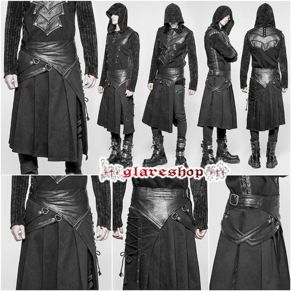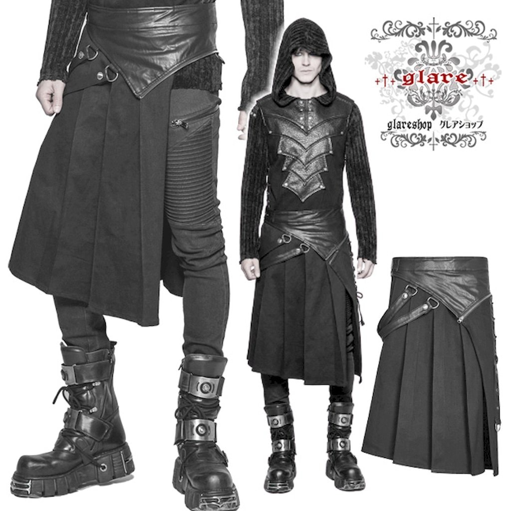 - glareshop グレアショップ「M.M/M.XL/M.3XL」SX255-B■スチームパンク 異素材 カバー付き レースアップ プリーツスカート メンズ | パンク ロック ファッション ヴィジュアル系 V系 モード系 コスプレ ステージ 衣装 服 [PUNK RAVE] Punk Removable Half Skirt