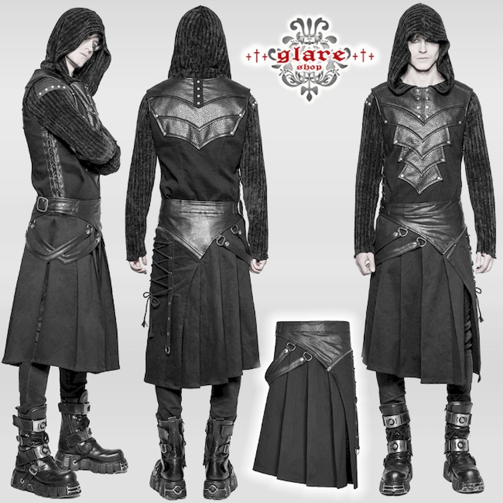glareshopグレアショップ「M.M/M.XL/M.3XL」SX255-B■スチームパンク異素材カバー付きレースアッププリーツスカートメンズ|パンクロックファッションヴィジュアル系V系モード系コスプレステージ衣装服[PUNKRAVE]PunkRemovableHalfSkirt