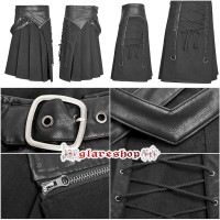glareshop グレアショップ「M.M/M.XL/M.3XL」SX255-B■スチームパンク 異素材 カバー付き レースアップ プリーツスカート メンズ | パンク ロック ファッション ヴィジュアル系 V系 モード系 コスプレ ステージ 衣装 服 [PUNK RAVE] Punk Removable Half Skirt