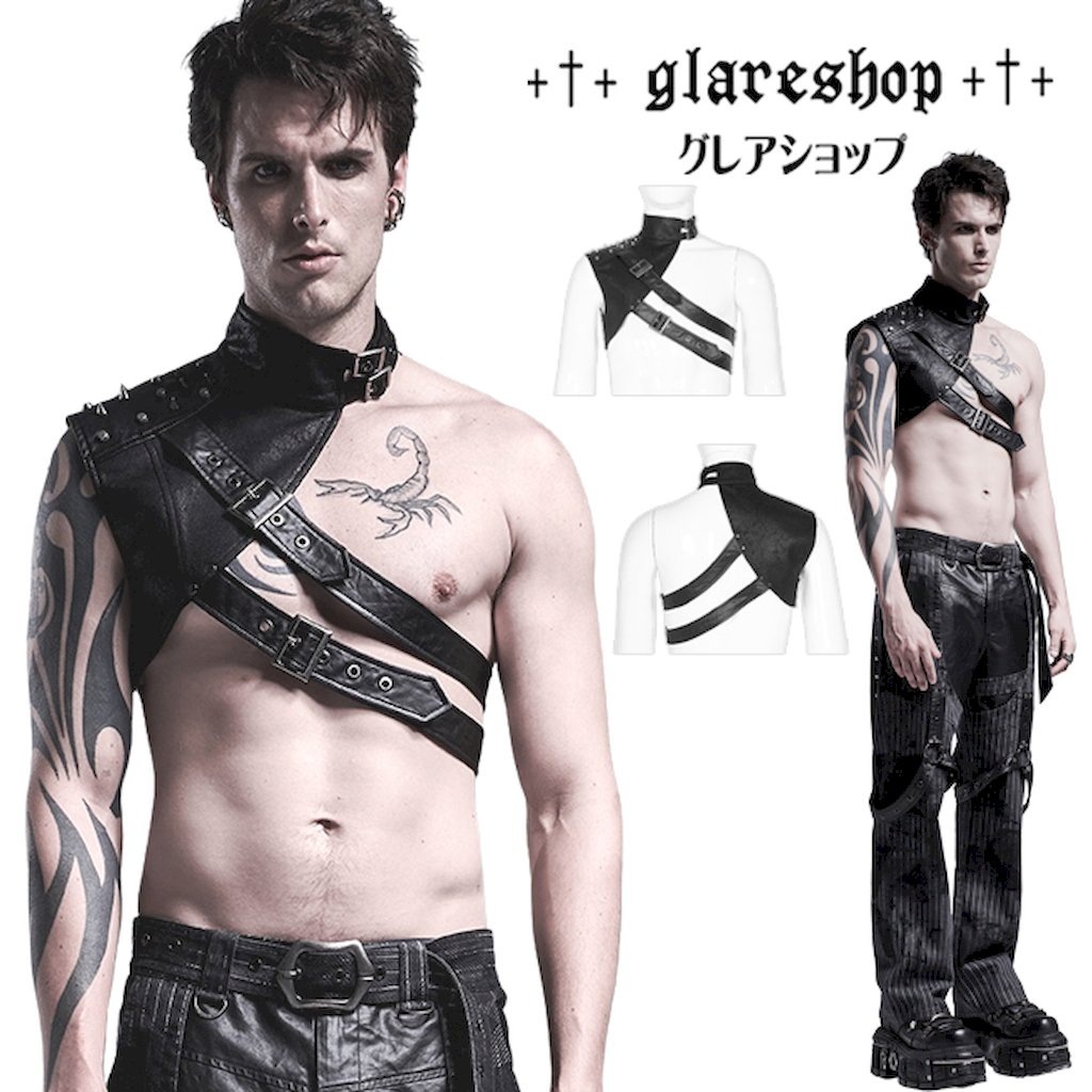 glareshopグレアショップ「M.S-M.5XL」TX892■パンク肩鎧PUレザーショルダーアーマーワンアームサイバーパンク黒メンズ|ゴスロリゴシックパンクロックファッションスチームパンクヴィジュアル系V系モード系コスプレステージ衣装服[PUNKRAVE]