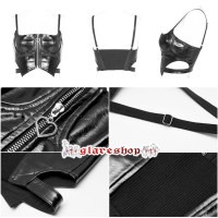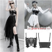 光沢があり、レザー生地を使用したタイトバージョンのキャミソールが登場!前部は視覚的にウエスト周囲を狭く見せるデザインとなっており、側面には部分的な中空があり、中空のディテールの感覚を高めています。さらに、フロントセンターにはメタルジッパーが施されています。洗練されたデザインと光沢があるPU生地が組み合わさったこのキャミソールは、ゴスロリやヴィジュアル系、モード系など様々なコーディネートにぴったりです。パンクスやコスプレイヤーの方にもおすすめです。
