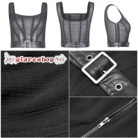 スクエアネック レザーベルト付き メッシュタンクトップが登場!ヴィジュアル系やモード系のおしゃれを楽しむ方におすすめです。シンプルなスクエアカラーデザインで、ボディラインをスリムに見せます。中空で通気性のある生地なので、快適な着心地を実現。取り外し可能なマットレザーベルトが付いており、必要に応じて装着感を調整できます。さらに、ダークチェック柄の織物がアクセントとなっています。ダンスパーティーやコスプレイベントなど、様々な場面で活躍すること間違いなし!一緒に履くスカートやパンツを選ぶと、より一層魅力が引き立ちます。