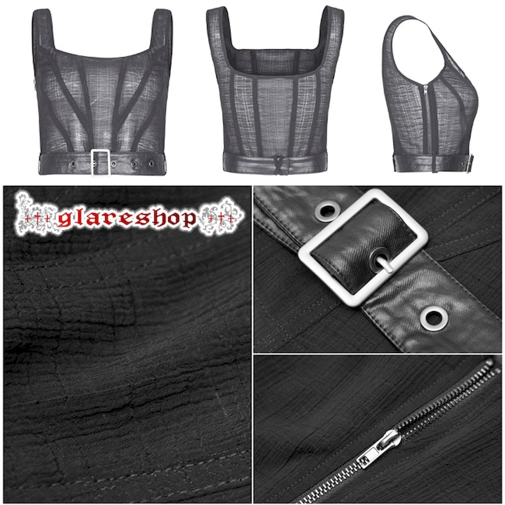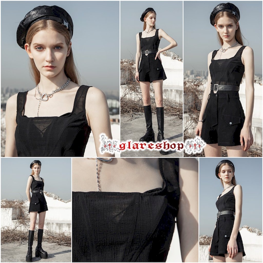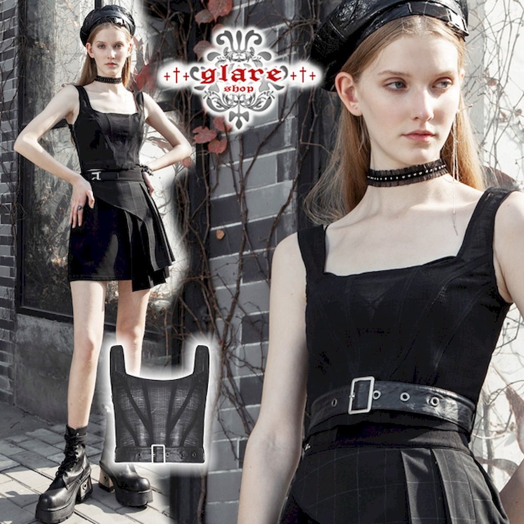 glareshop グレアショップ「XS-4XL」KX419-B■ゴスロリ スクエアネック レザーベルト付き メッシュタンクトップ トップス 黒 レディース | 地雷系 ヴィジュアル系 V系 モード系 コスプレ ステージ 衣装 服 [PUNK RAVE] Mesh Tank Top