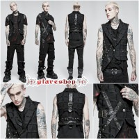 glareshopグレアショップ「M.S-M.5XL」KX457-B■ゴスロリパンク退廃風ホローアウトリベットベルトアシンメトリーベスト黒メンズ|ゴスロリゴシックパンクロックファッションスチームパンクヴィジュアル系V系モード系コスプレステージ衣装服[PUNKRAVE]