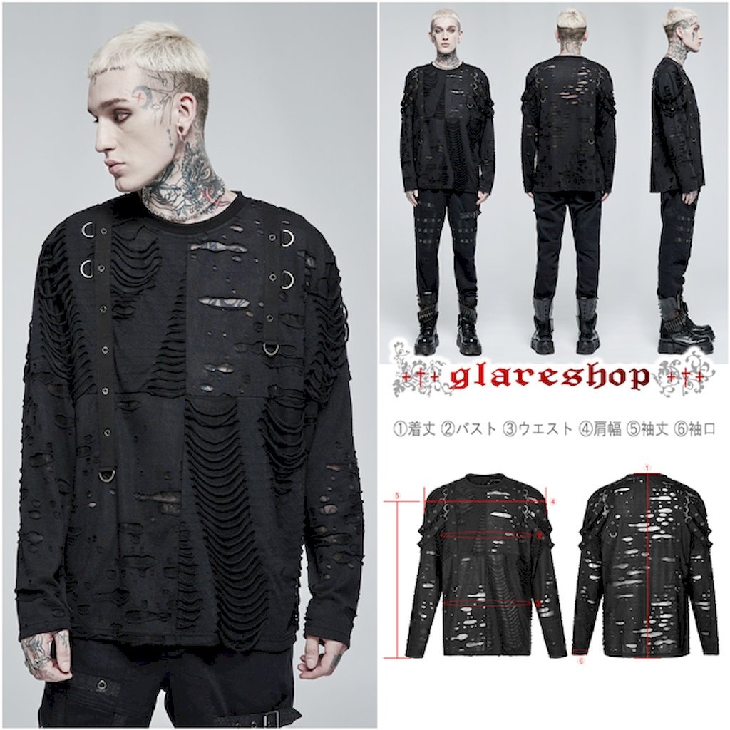 †検索キーワード:2022-03-2022-メンズ-春夏 メンズ パンク 退廃風 ダメージ加工 個性的 長袖 Tシャツ トップス 黒 ブラック ゴスロリ ゴシックロリータ ゴシック パンク ロック スチームパンク ヴィジュアル系 V系 モード系 カジュアル ハロウィン コスプレ ファッション 衣装 舞台 シルエット イベント ライブ 服 ステージ衣装 通販 PUNKRAVE PUNK RAVE punkrave punk rave パンクレイブ