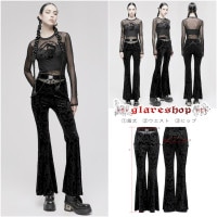 - glareshop グレアショップ「XS-4XL」PX573-B■ゴスロリ ゴシック シースループリントベルベットロングフレアパンツ 黒 ブラック レディース | 地雷系 ヴィジュアル系 V系 モード系 コスプレ ステージ 衣装 服 [PUNK RAVE] Gothic Dark Printed Velvet Flared Pants