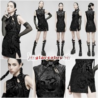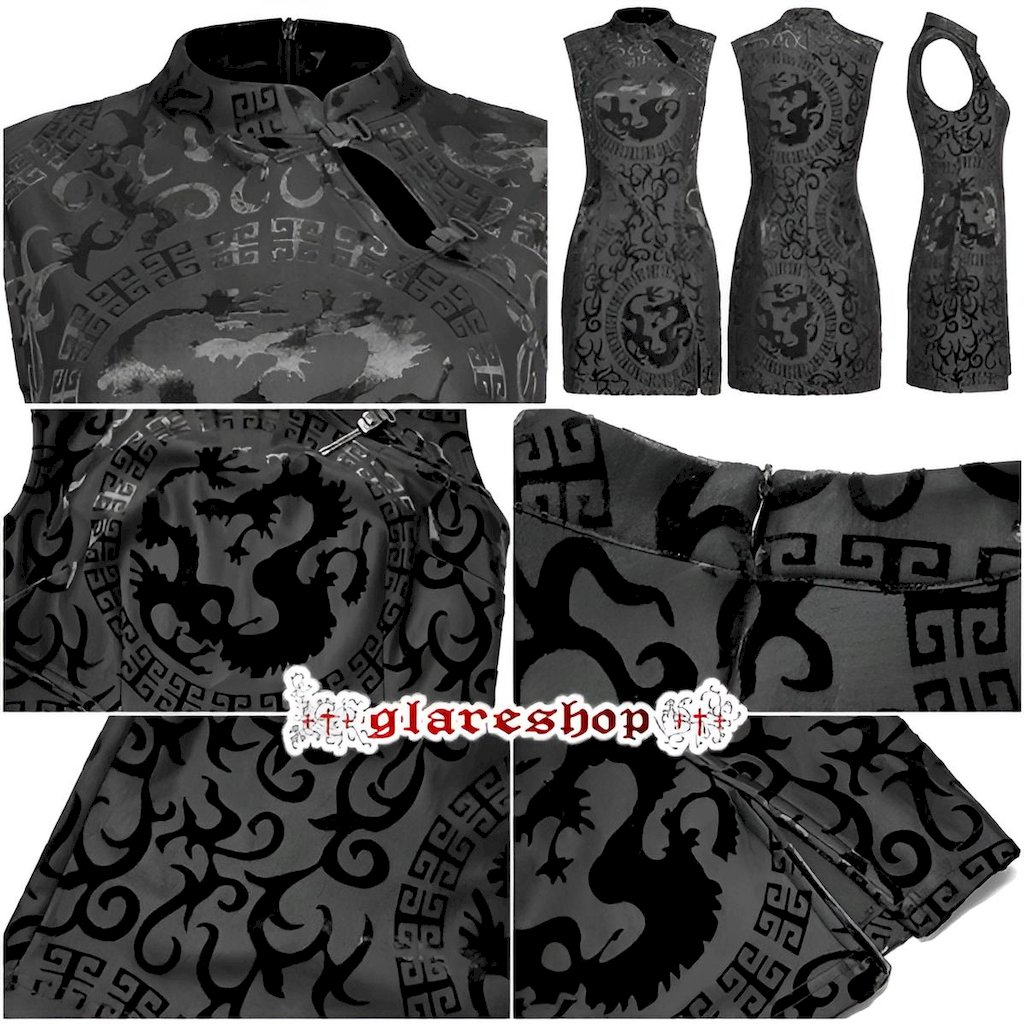 - glareshop グレアショップ「XS-4XL」WX689-B■ ゴシック シック ドラゴン柄模様 チャイナドレス ミニドレス 黒 レディース | ゴスロリ ヴィジュアル系 コスプレ ステージ 衣装 服 [PUNK RAVE] Gothic Chinese Style Dragon Pattern Sleeveless Sexy Short Dress