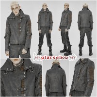 スチームパンクデザインが特徴の異素材レザージャケットです。グレーとブラウンの配色が大人っぽく、メンズ向けにデザインされています。 ゴシック、パンク、ロックファッションなど様々なスタイルに合わせることができます。ヴィジュアル系、V系、モード系、コスプレやステージ衣装としても大活躍間違いなしです。
