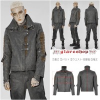 glareshop グレアショップ「M.S-M.5XL」JX943-B■パンク 異素材 軍服 コート ロング丈 ヴィジュアル系 黒 ブラック メンズ | ミリタリー | パンクロック ヴィジュアル系 V系 衣装 服 [PUNK RAVE] Punk Wild Vision Long Jacket