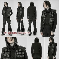 glareshop グレアショップ「M.S-M.5XL」KX454-B■パンクヴィジュアル系退廃風ダメージ加工異素材ベスト ロング丈 黒 ブラック メンズ | ゴスロリ ゴシック パンク ロック ファッション スチームパンク V系 ステージ 衣装 服 [PUNK RAVE] Punk old medium length vest