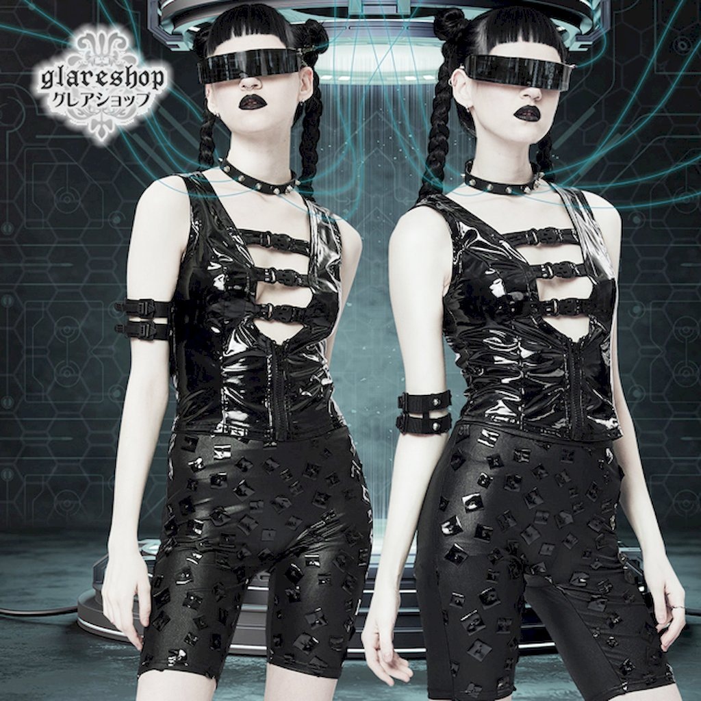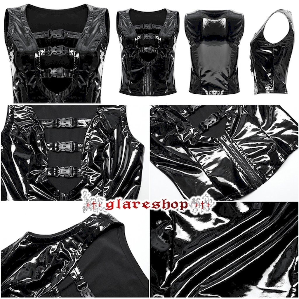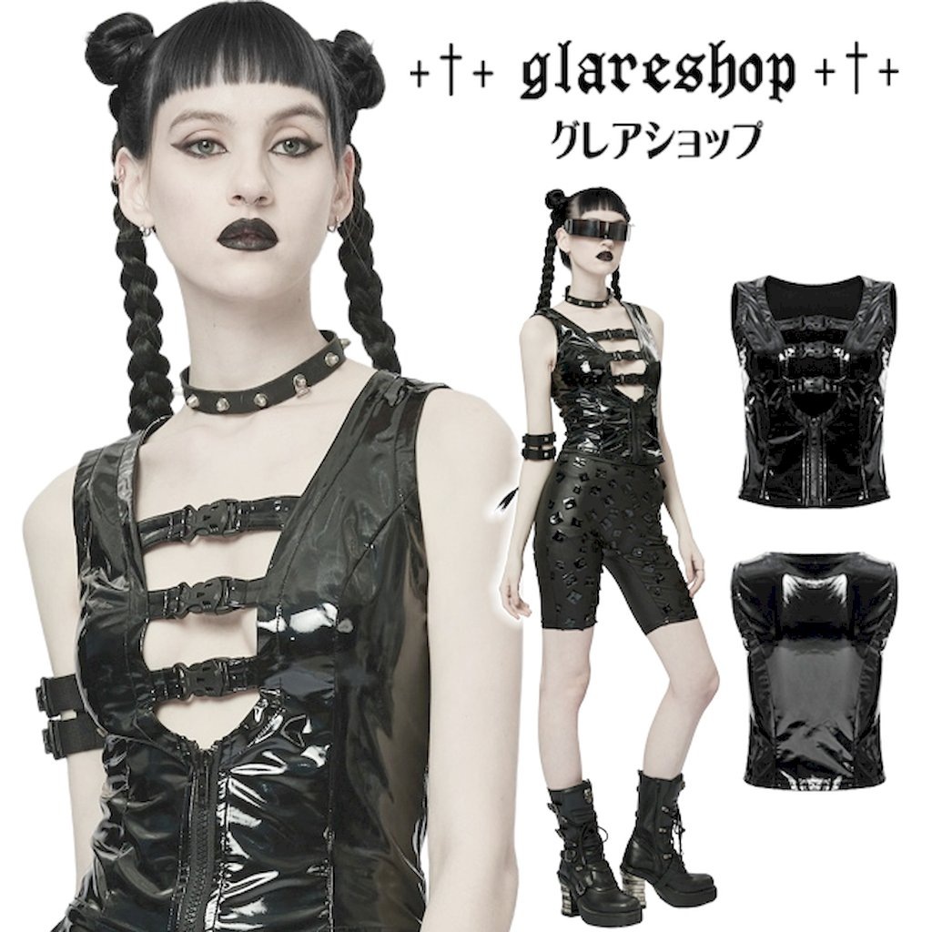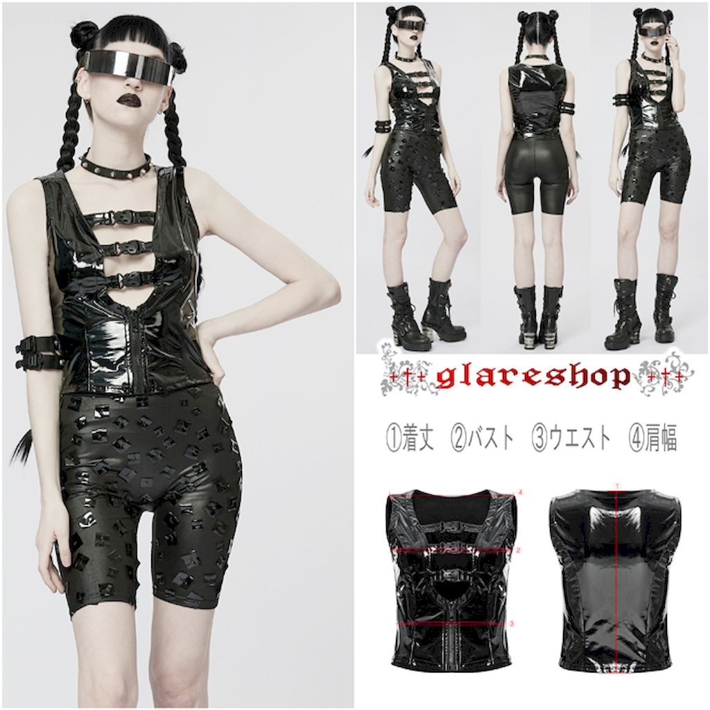 glareshopグレアショップ「XS-4XL」KX506-B■ゴスロリパンク近未来パンクセクシーフェックレザーベスト黒レディース|ゴスロリゴシックパンクロックファッションスチームパンクヴィジュアル系V系モード系コスプレステージ衣装服[PUNKRAVE]
