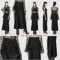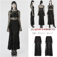- glareshop グレアショップ「XS-4XL」SX523-B■ゴスロリ ゴシックサイドスリット ダメージ加工 タイトスカート 黒 レディース | ヴィジュアル系 V系 モード系 コスプレ ステージ 衣装 服 [PUNK RAVE] Gothic Decadent Lace High Slit Long Skirt