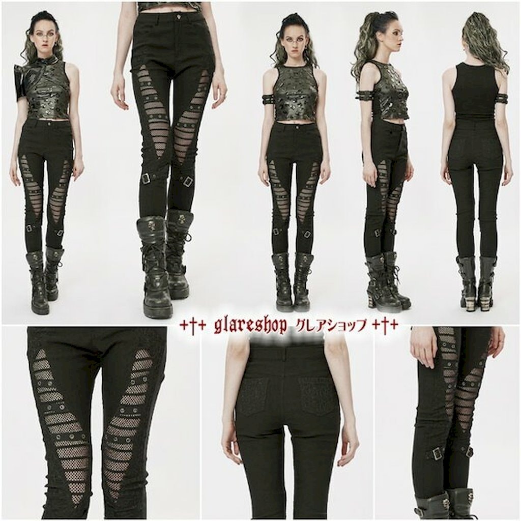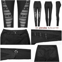 - glareshop グレアショップ「XS-4XL」PX620-B■パンク ツイル洗い加工 異素材 メッシュ シースルー レギパン ロングパンツ 黒 レディース | ゴスロリ ゴシック パンク ロック v系 ミリタリー 原宿系 病みクール ダーク系 暗黒系 ファッション 地雷系 量産型 ガ 服 [PUNK RAVE]