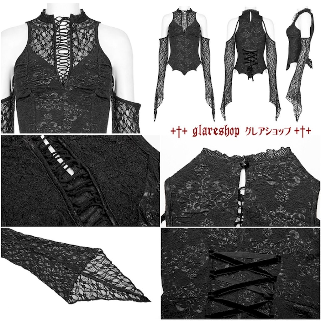 †検索キーワード:2023-01-2023-レディース-春夏 ゴシック ダーク 個性的 カジュアル モード 原宿スタイル 地雷系 地雷系女子 地雷系コーデ ジャガード&レース 肩見せ レースアップ 蝙蝠の翼イメージした裾 カットソー シースルー レディース 黒 ブラック S,L,3L ゴスロリ ゴシックロリータ ゴシック パンク ロック スチームパンク ヴィジュアル系 V系 モード系 カジュアル ハロウィン コスプレ ファッション 衣装 舞台 シルエット イベント ライブ 服 ステージ衣装 通販 PUNKRAVE PUNK RAVE punkrave punk rave パンクレイブ