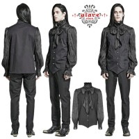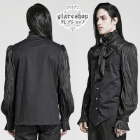 - glareshop グレアショップ「M.S-M.5XL」TXA137-B■ゴシック 異素材 プリーツ 肩シャーリング リボンネクタイ付き 長袖シャツ 黒 メンズ | ヴィジュアル系 V系 コスプレ ステージ 衣装 服 [PUNK RAVE] Retro Gothic Cage Visual Ruffle Long Sleeve Party Shirt