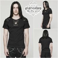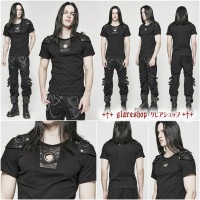 - glareshop グレアショップ「M.M/M.XL/M.3XL」TXA128-B■パンク 肩鎧装飾 ニット 異素材切替 半袖 Tシャツ 黒 メンズ | ゴスロリ ゴシック ダーク パンクロック モード 原宿スタイル v系 病みクール ダーク系 暗黒系 コスプレ ステージ 衣装 服 [PUNK RAVE] Knit T-shirt