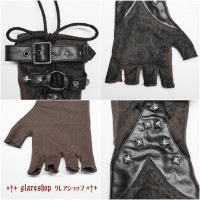 glareshop グレアショップ「M.L/M.3XL」Zt078-C■パンク ニット&プリントツイル 異素材 指なし手袋 ブラウン メンズ | ゴスロリ ファッション スチームパンク ヴィジュアル系 V系 サイバーパンク モード系 コスプレ ステージ 衣装 服 [PUNK RAVE] Punk gloves