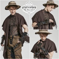 glareshopグレアショップ「M.L/M.3XL」Zt078-C■パンクニット&プリントツイル異素材指なし手袋ブラウンメンズ|ゴスロリファッションスチームパンクヴィジュアル系V系サイバーパンクモード系コスプレステージ衣装服[PUNKRAVE]Punkgloves