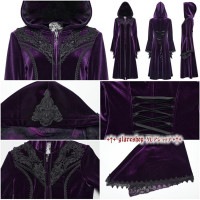 - glareshop グレアショップ「XS-5XL」JX855-VI■ゴスロリ コート ロング丈 ゴシックゴージャスな肩デカール&レース装飾ベルベット 紫×黒 パープル×ブラック レディース | ヴィジュアル系 V系 モード系 コスプレ ステージ 衣装 服 [PUNK RAVE] Goth Gorgeous Velvet Coat