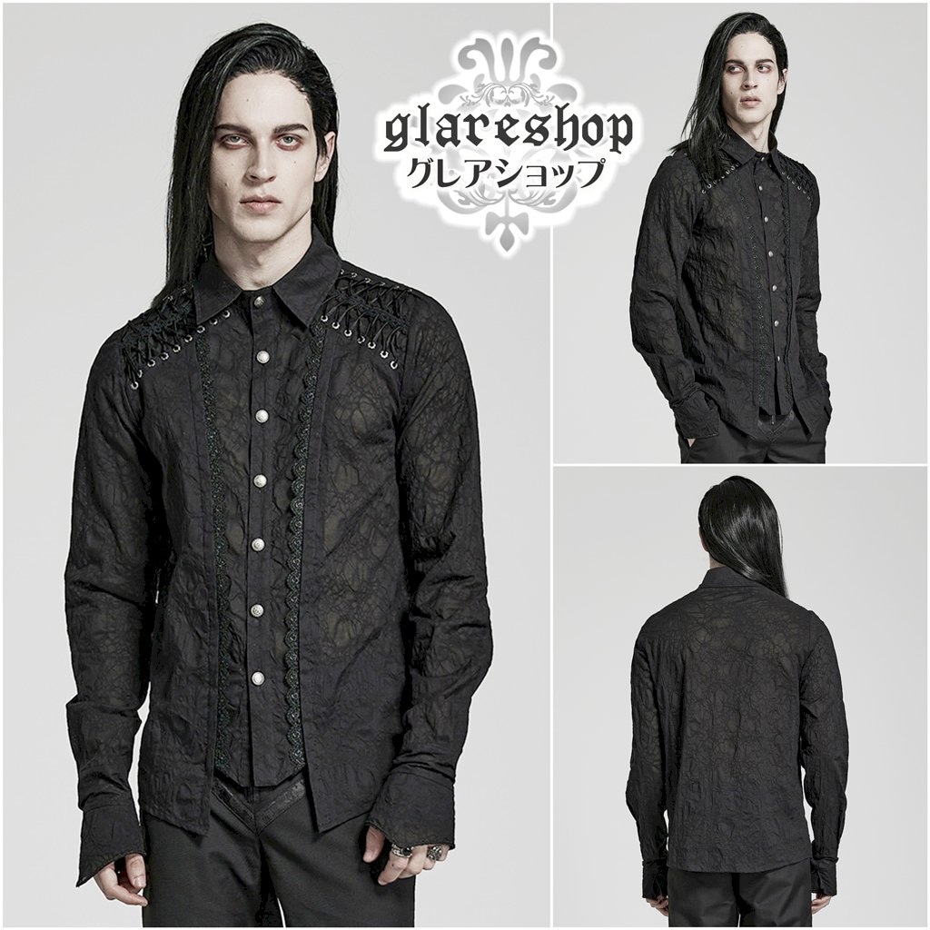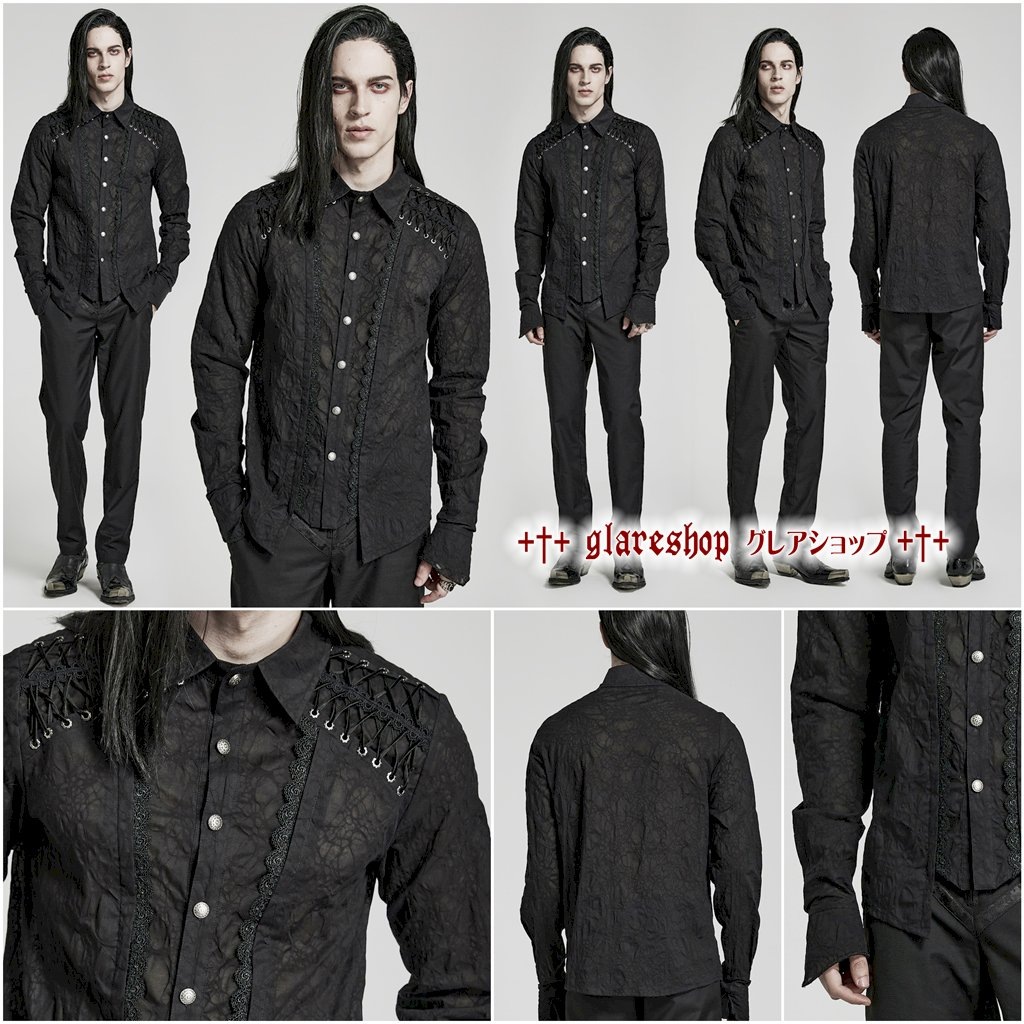 †検索キーワード:2023-03.2023-メンズ-春夏 絶妙なゴシックレース装飾 ウェビングフレア袖口 長袖シャツ ゴシックシャツ メンズ 黒 ブラック ゴシック フォーマル シック モード系 貴公子 王子様 紳士 貴族 S,M,L,LL,3L,4L,5L,6L ゴスロリ ゴシックロリータ ゴシック パンク ロック スチームパンク ヴィジュアル系 V系 モード系 カジュアル ハロウィン コスプレ ファッション 衣装 舞台 シルエット イベント ライブ 服 ステージ衣装 通販 PUNKRAVE PUNK RAVE punkrave punk rave パンクレイブ