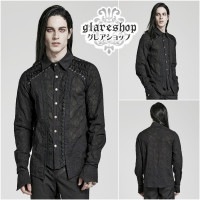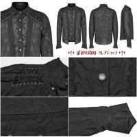 - glareshop グレアショップ「M.S-M.5XL」TXA132-B■絶妙なゴシックレース装飾 ウェビングフレア袖口 長袖シャツ シアーシャツ 黒 メンズ | ヴィジュアル系 V系 ステージ 衣装 服 [PUNK RAVE] Vintage Gothic Lace Trim Long Sleeve Shirt