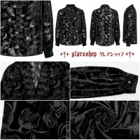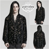 glareshop グレアショップ「M.S-M.5XL」TXA134-B■ゴシックピラニア柄レースアップベルベットランタンスリーブシャツ パイレーツブラウス 黒 メンズ | V系 シック コスプレ ステージ 衣装 服 [PUNK RAVE] Vintage Gothic Velvet Long Sleeve Loose Shirt