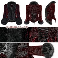 ゴスロリやゴシックファッションが好きな方にぴったりのベルベットジャケットです。エンボス加工が施されたベルベット生地が高級感を演出し、ファー付きのデザインがさらに華やかさをプラスします。ショート丈なので、女性らしさを引き立てながら、スチームパンクやヴィジュアル系、モード系、コスプレなどのスタイリングにもぴったりです。ステージ衣装やパーティーシーンでも活躍すること間違いなしです!