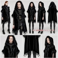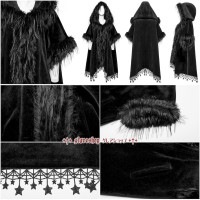 ゴスロリ、地雷系、ヴィジュアル系、V系、モード系、コスプレ、ステージにぴったりな一枚が入荷しました!フェイクファーフードバットスリーブマントは、黒のドレスにパンクな雰囲気をプラスしてくれます。あなたのスタイリッシュさを際立たせます。