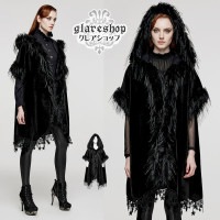 glareshopグレアショップ「S/L/2XL」JX868-B■フェイクファーフード付きバットスリーブマント黒ブラックレディース|ゴスロリ地雷系ヴィジュアル系V系モード系コスプレステージ衣装服[PUNKRAVE]GothBatCloak