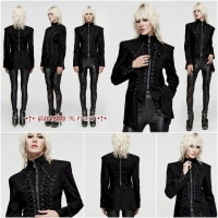 パンクスタンドカラーレースアップ装飾デニムジャケットは、ミリタリーやヴィジュアル系、モード系などのファッションにぴったりのアイテムです。黒のデニム素材にフロントアイレットのドローストリングが施され、視覚的インパクトを豊かにします。スリムフィットなシルエットで、女性らしさを引き立てつつも、パンクな要素を取り入れたデザインです。コスプレやステージ衣装にもおすすめです。イベントやパフォーマンス用途におすすめの商品です。