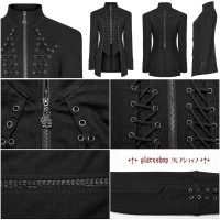 - glareshop グレアショップ「XS-4XL」JX869-B■パンク デニムジャケット ミドル丈 スタンドカラーレースアップ装飾 黒 ブラック レディース | ミリタリー ヴィジュアル系 V系 モード系 コスプレ ステージ 衣装 服 [PUNK RAVE] Punk Denim Jacket