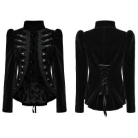 ゴシック スタンドカラージャケットは、あなたのスタイルにドラマチックな変化をもたらします。贅沢なベルベット素材が放つ深みのある黒色と、刺繍アップリケ装飾が相まって、ゴシック様式の豪華さとビクトリア様式の洗練さを見事に融合。周囲の目を惹く存在感を放ちます。