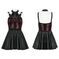 - glareshop グレアショップ「S/L/2XL」WX663-R■ゴスロリ パンク ダメージ加工 蜘蛛の巣 異素材 ドレス 黒×赤 レディース | パンク ロック ファッション スチームパンク ヴィジュアル系 V系 ステージ 衣装 服 [PUNK RAVE] Goth cut dress