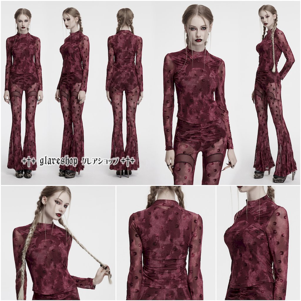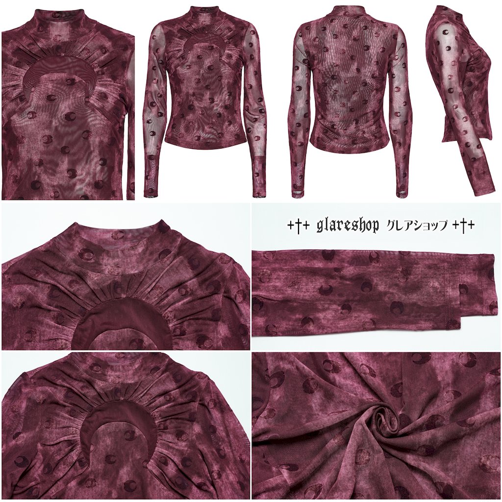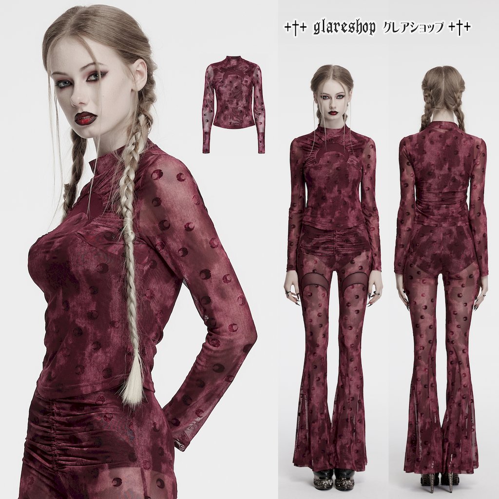 - glareshop グレアショップ「S/L/2XL」TXA392-R■ゴシック三日月模様ベルベット長袖Tシャツ カットソー レッド レディース | ヴィジュアル系 V系 モード系 衣装 服 [PUNK RAVE] Gothic Crescent Hollowed Velvet Long Sleeve T-Shirt