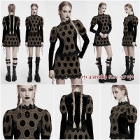 glareshopグレアショップ「S/L/2XL」TXA395-C■ゴシックレトロパレススタイルベルベット長袖シャツカットソーブラウン×ブラックレディース|ヴィジュアル系V系モード系衣装服[PUNKRAVE]GothicRetroPalaceStyleVelvetLongSleeveShirt