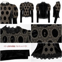 - 【売り切れ】glareshop グレアショップ「S/L/2XL」TXA395-C■ゴシックレトロパレススタイルベルベット長袖シャツ カットソー ブラウン×ブラック レディース | ヴィジュアル系 V系 モード系 衣装 服 [PUNK RAVE] Gothic Retro Palace Style Velvet Long Sleeve Shirt
