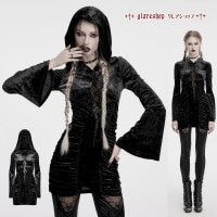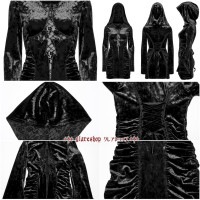 glareshop グレアショップ「S/L/2XL」WX946-B■ゴシックベルベットレースクロスフード付きボディコンドレス 黒 レディース | ヴィジュアル系 V系 ステージ 衣装 服 [PUNK RAVE] Gothic Velvet Lace Cross Hooded Bodycon Dress
