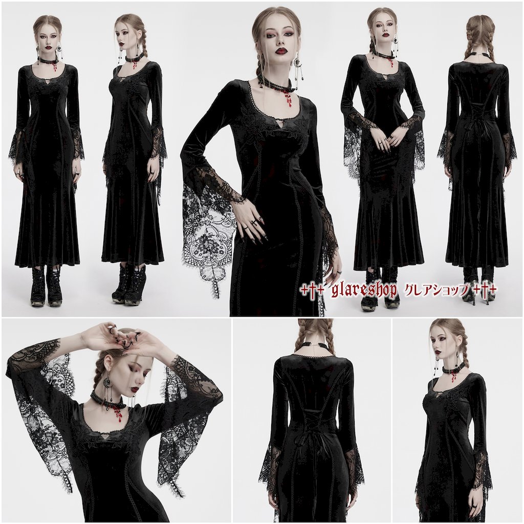 glareshop グレアショップ「S/L/2XL」WX948-B■ゴシックベルベットロングスリーブフィッシュテールマキシドレス 黒 レディース | ヴィジュアル系 V系 モード系 コスプレ ステージ 衣装 服 [PUNK RAVE] Gothic Velvet Long Sleeve Fishtail Maxi Dress