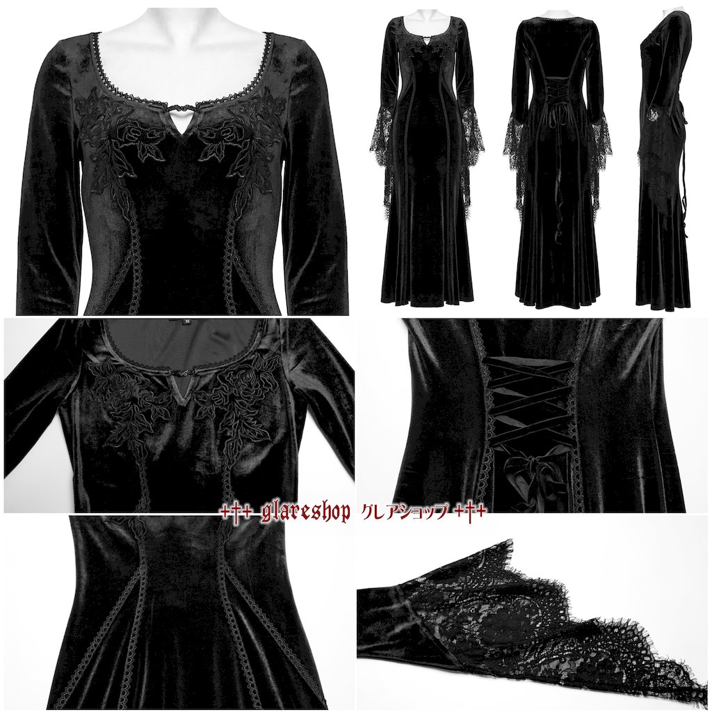 glareshopグレアショップ「S/L/2XL」WX948-B■ゴシックベルベットロングスリーブフィッシュテールマキシドレス黒レディース|ヴィジュアル系V系モード系コスプレステージ衣装服[PUNKRAVE]GothicVelvetLongSleeveFishtailMaxiDress